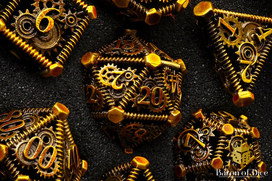Cogs & Gears Metal Rpg Dice Set - 7 Pieces