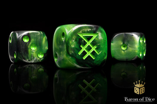 Twin Headed Lizard, Green & Gold, 16Mm Dice