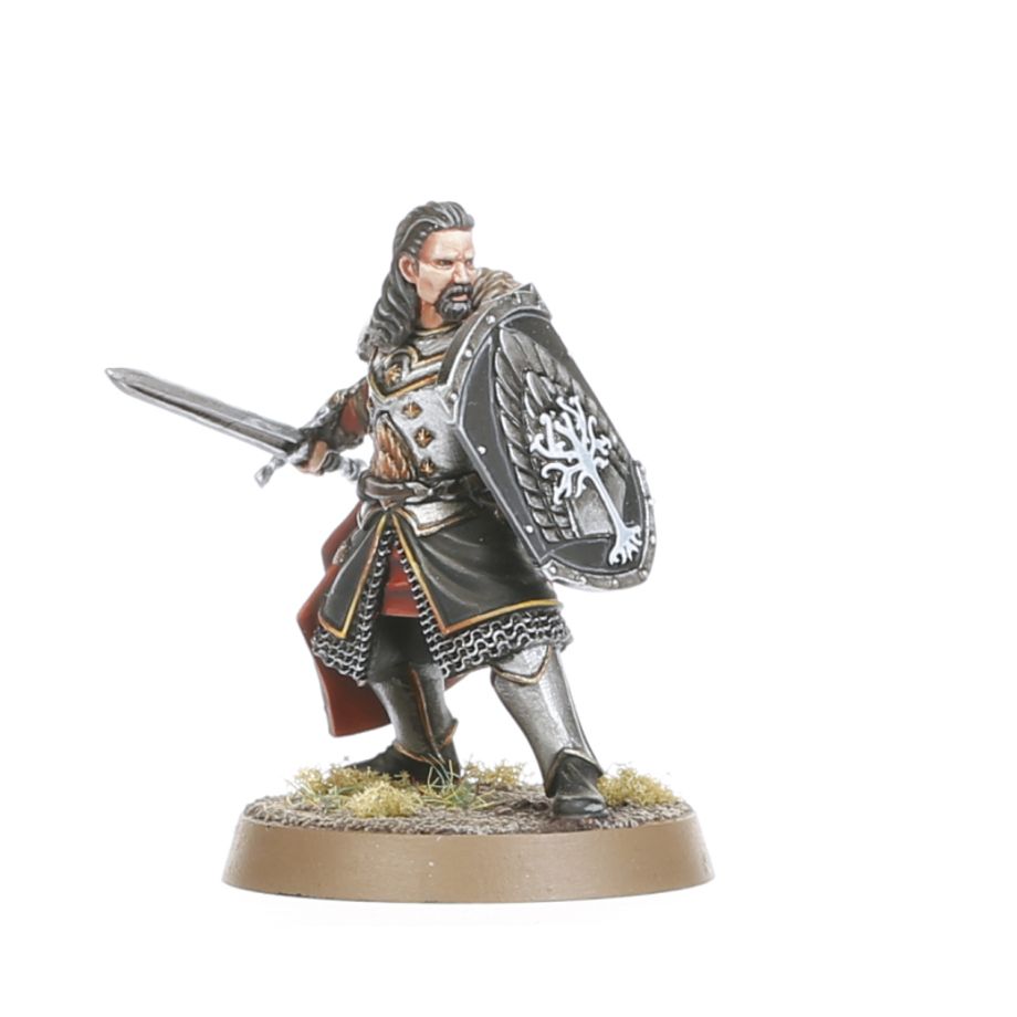 This multipart resin kit builds Eärnur, the Last King of Gondor, both on foot and on horseback. This mighty hero can lead Gondor armies in the Middle-earth Strategy Battle Game. Each of these miniatures is clad in fine heavy armour and carries an elegant shield decorated with the White Tree of Gondor. The mounted model wields a lance, while the on-foot version carries a sword. Both come with a choice of two heads – either helmeted or bare-headed – for you to personalise this mighty leader.